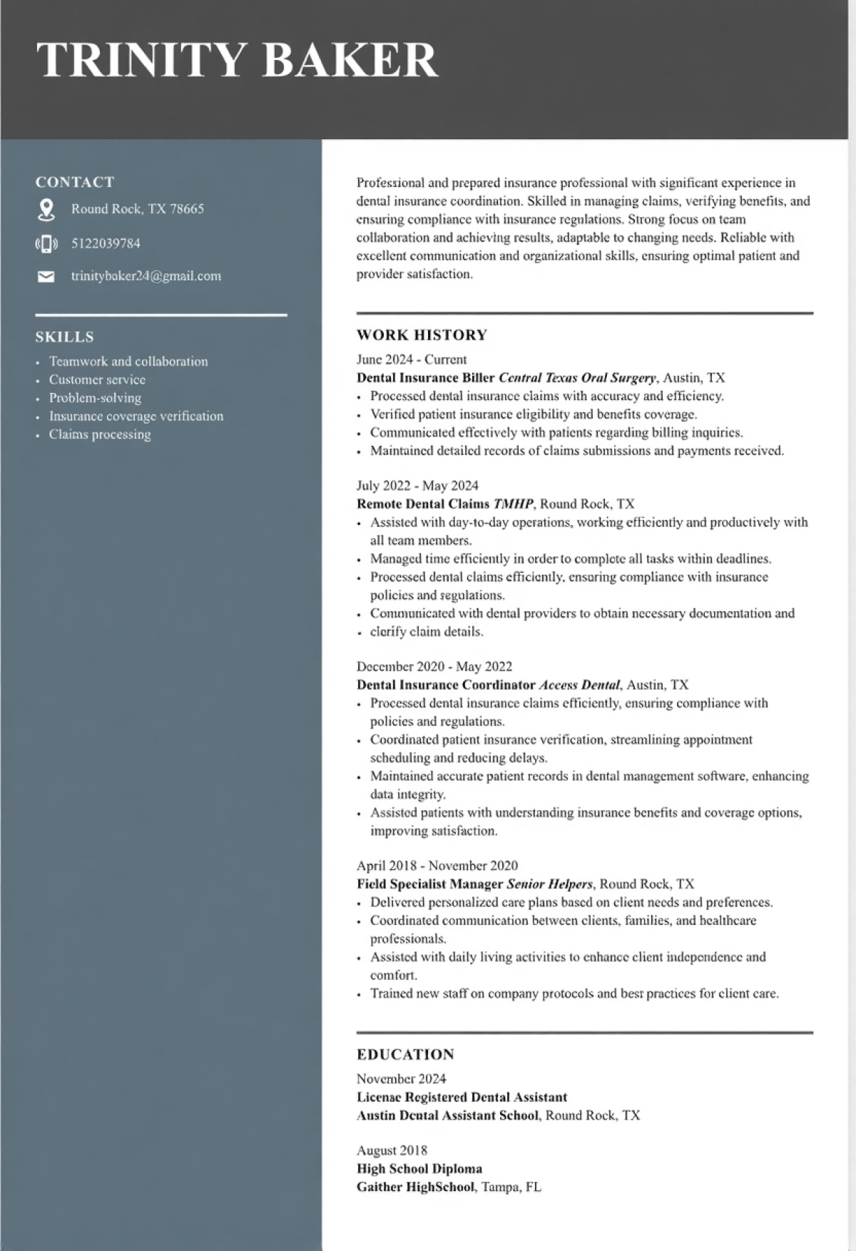 Desired Role: Insurance Coordinator/treatment planner / asst office manager